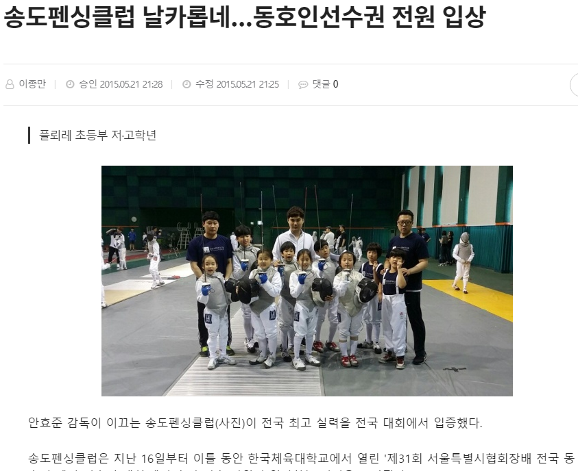 “"Songdo Fencing Club Sharpens Its Edge...All Members Win Medals at National Fencing Championship"”