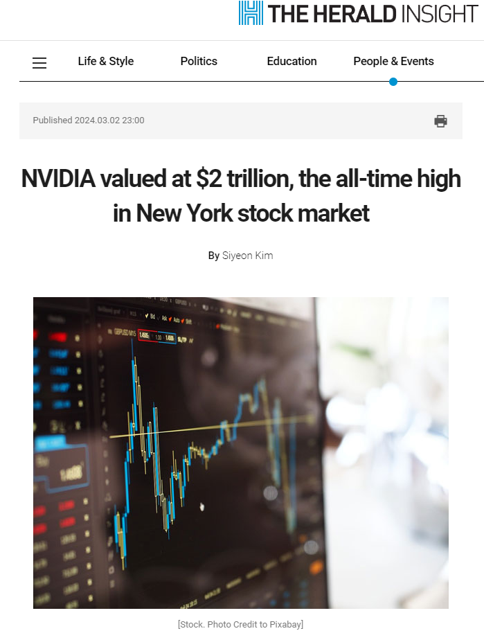 NVIDIA valued at $2 trillion, the all-time high in New York stock market