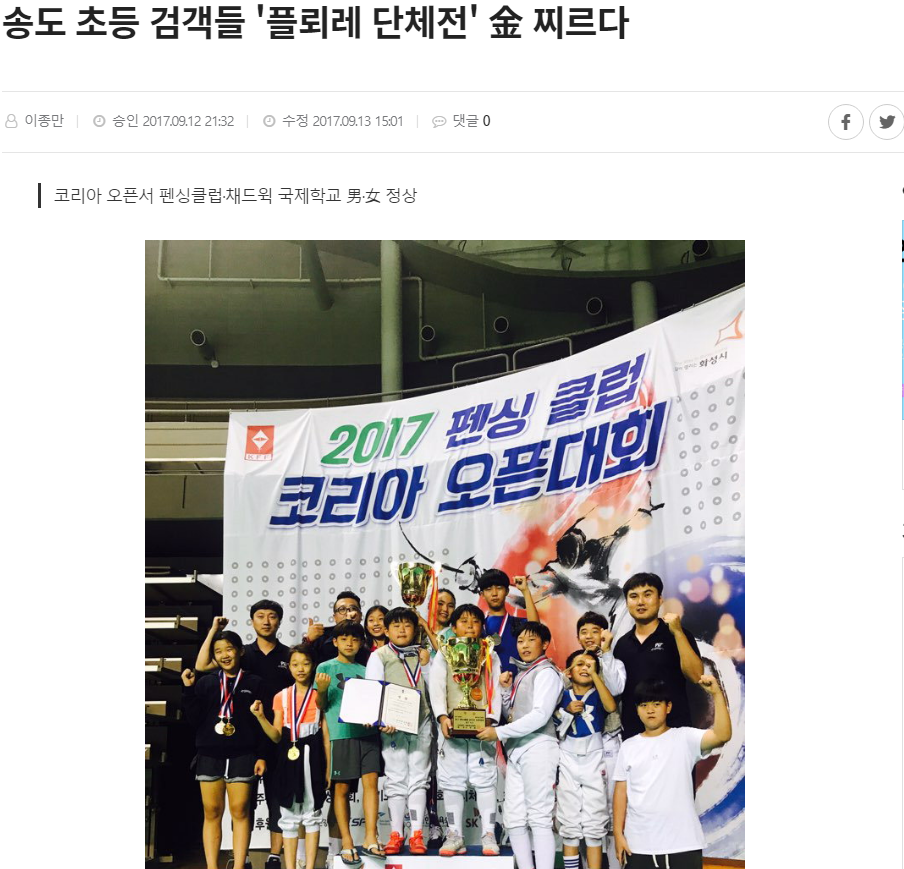 “Songdo Elementary School Fencers Win Gold in the 'Fleuret Team Competition'”